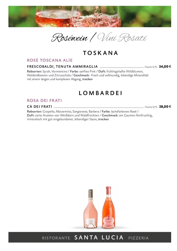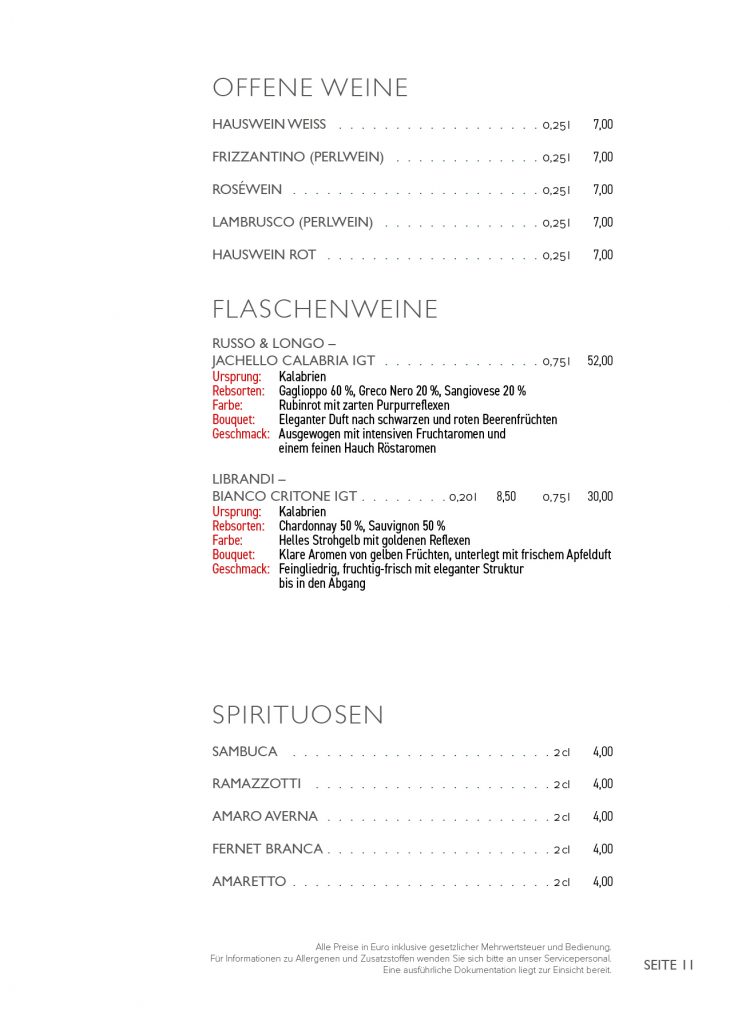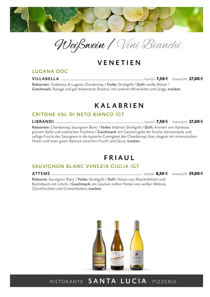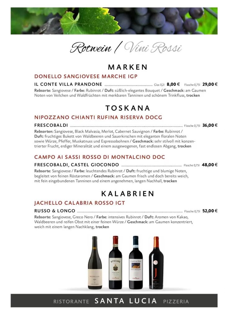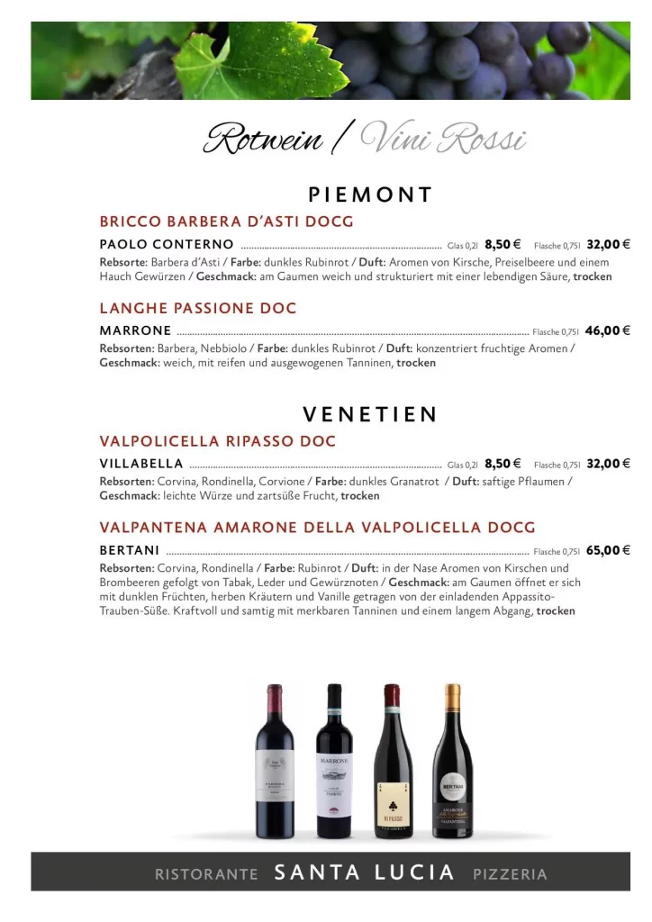 Auch für die besten und edelsten Weine aus Italien und außerhalb ist bei uns gesorgt. Selbstverständlich gibt es alles, was Sie in unserer Speisekarte finden können, auch zum Mitnehmen für einen gemütlichen Abend zu Hause. Wir nehmen Ihre Bestellung auch gerne telefonisch entgegen.